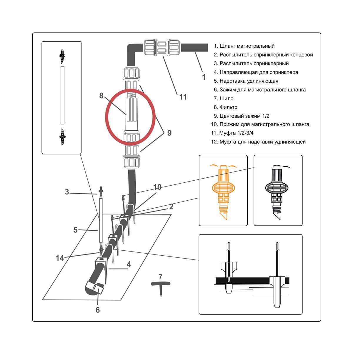 - Продуманная конструкция спринклеров обеспечивает полив всей поверхности грядки, оставляя сухими дорожки между ними;
