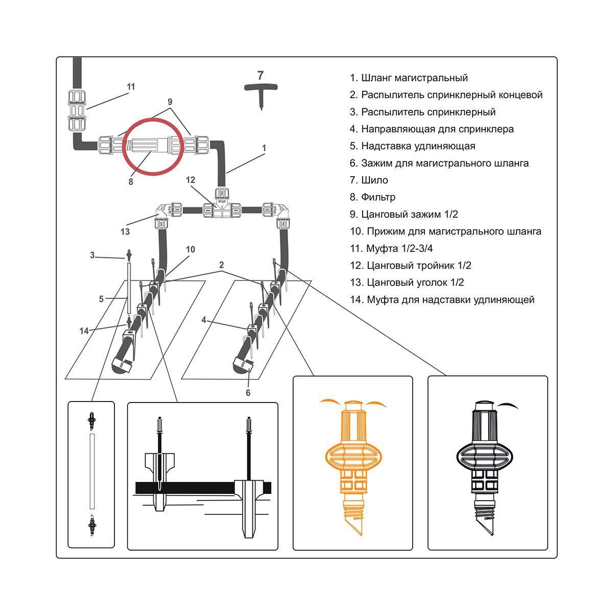 - Продуманная конструкция спринклеров обеспечивает полив всей поверхности грядки, оставляя сухими дорожки между ними;