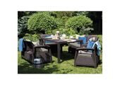 Комплект идеально подойдет для обустройства гармоничного интерьера и уютной обстановки. Ткань подушек обладает влагоотталкивающей пропиткой, тактильно приятная на ощупь. Лента искусственного ротанга напоминает шнур, у стола откручиваются ножки, что упрощает процесс его транспортировки.