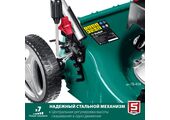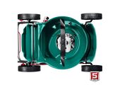 - Колеса увеличенного диаметра на подшипниках и эргономичная рукоятка облегчают перемещение косилки по газону