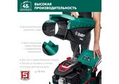 - Сбалансированное соотношение мощности двигателя и ширины кошения ускоряет процесс обработки и снижает нагрузку, чем увеличивает ресурс изделия
