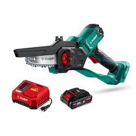 ЗУБР 20 В, 100 мм шина, 1 АКБ LMS (2 Ач), мини-пила цепная аккумуляторная (ПЦА-2010-21)