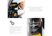Ширина захвата за один проход составляет 62 см. Шнек с зубцами измельчает плотный снег. Благодаря глубокому протектору колеса не скользят при гололеде, обеспечивая хорошую проходимость машины. Поворот желоба регулируется специальным рычагом.