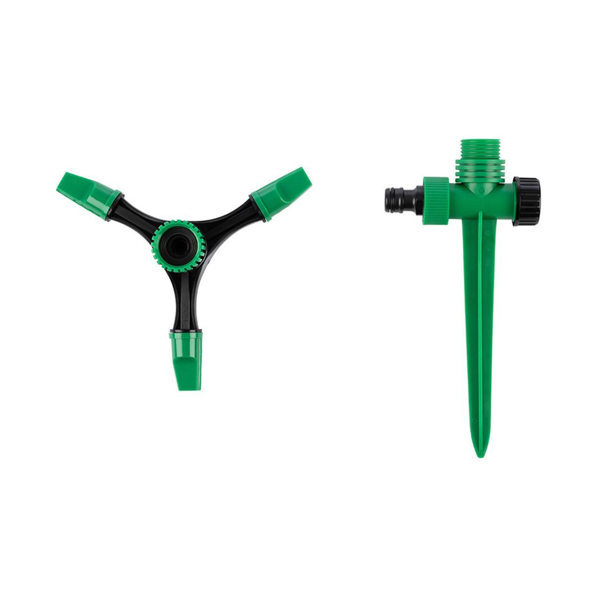 Разбрызгиватель присоединяется к системе полива с помощью специального соединителя. Обеспечивает равномерное орошение территории.