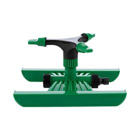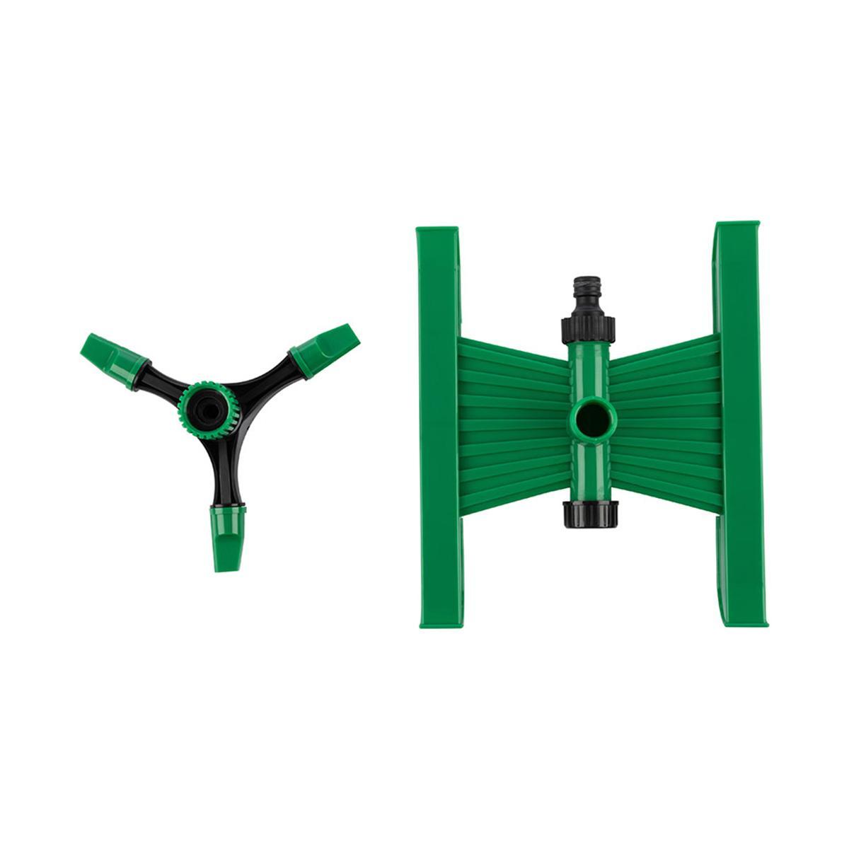 Разбрызгиватель присоединяется к системе полива с помощью специального соединителя. Обеспечивает равномерное орошение территории.