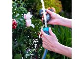 Набор для полива включает в себя комплектующие, необходимые для быстрого подключения и использования поливочного шланга диаметром 1/2". Штуцеры предназначены для подключения шланга к резьбовому водопроводному крану в зависимости от диаметра трубы. Коннектор 1/2" присоединяется к штуцеру и служит для надежного и быстрого крепления шланга. Коннектор с аквастопом 1/2" предусмотрен для быстрой фиксации регулируемой насадки и других приспособлений для полива. Благодаря аквастопу, при отключении от устройства подача воды из коннектора прекратится. Насадка на шланг с регулируемой форсункой дает возможность выбрать оптимальное распыление для полива.