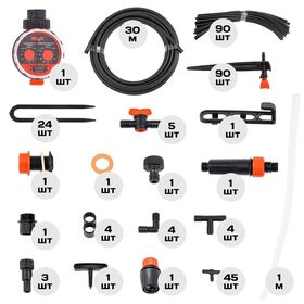 Комплект для капельного полива Жук, от емкости, регулируемые капельницы, с таймером, 90 растений