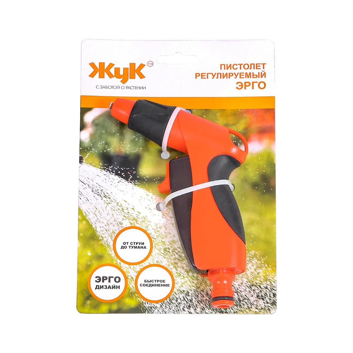 Пистолет позволяет плавно регулировать интенсивность распыла от струи до тумана. Эргономичная рукоятка удобно ложится в ладонь, а фиксатор рабочего положения клавиши позволяет с удобством выполнять полив газона или садовых культур.