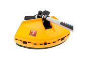 - Защитный кожух из противоударного пластика выдерживает даже высокие нагрузки и надежно защищает оператора от разлетающейся травы и камней.