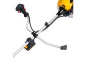 - Максимально комфортная работа — благодаря плечевому ремню триммер удобно удерживать, а мягкая пластина предохраняет пользователя от вибраций и ударов штангой по бедру.