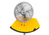 - Дополнительные возможности — можно приобрести и установить на триммер диски Denzel 96323, 96325 для быстрого удаления растительности с жесткими стеблями (полыни, крапивы, лебеды), 96328 для скашивания молодых побегов кустарника диаметром до 3 мм.