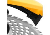 - Автоматическая подрезка лески — нож на кожухе укорачивает концы корда до нужной длины, что предотвращает перегрузку двигателя.