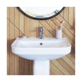 Раковина - сантехническое оборудование для ванной комнаты или совмещенного санузла. Поверхность устойчива к бытовой химии и перепадам температуры. На горизонтальной панели удобно хранить емкости со средствами гигиены. Раковина устанавливается на пьедестал. Лаконичный дизайн и нейтральный оттенок сочетаются с разнообразным интерьером.