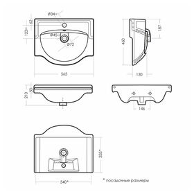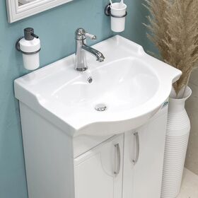 Умывальник Real 56 - это глубокий умывальник с высоким задним бортом, благодаря которому вода не вытекает за тумбу.