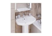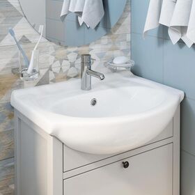 Умывальник Вега 55 особенно удобен для небольших ванных комнат за счет своего компактного размера, который сочетается с функциональностью. Его особенность - высокие бортики, задерживающие брызги внутри умывальника.