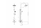 Верхний душ диаметром 195 мм, 1-функциональный, может вращаться и менять положение, можно отрегулировать по высоте положение отдельных частей стойки. Однорычажный смеситель со встроенным аэратором.