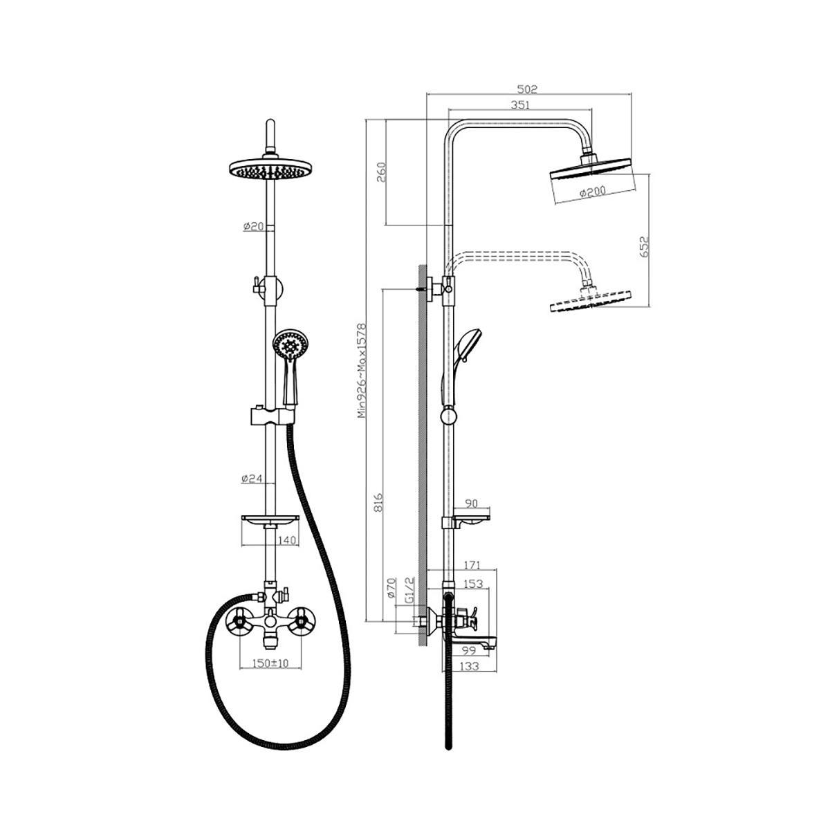 Душевая система Rossinka Q02-46, хром