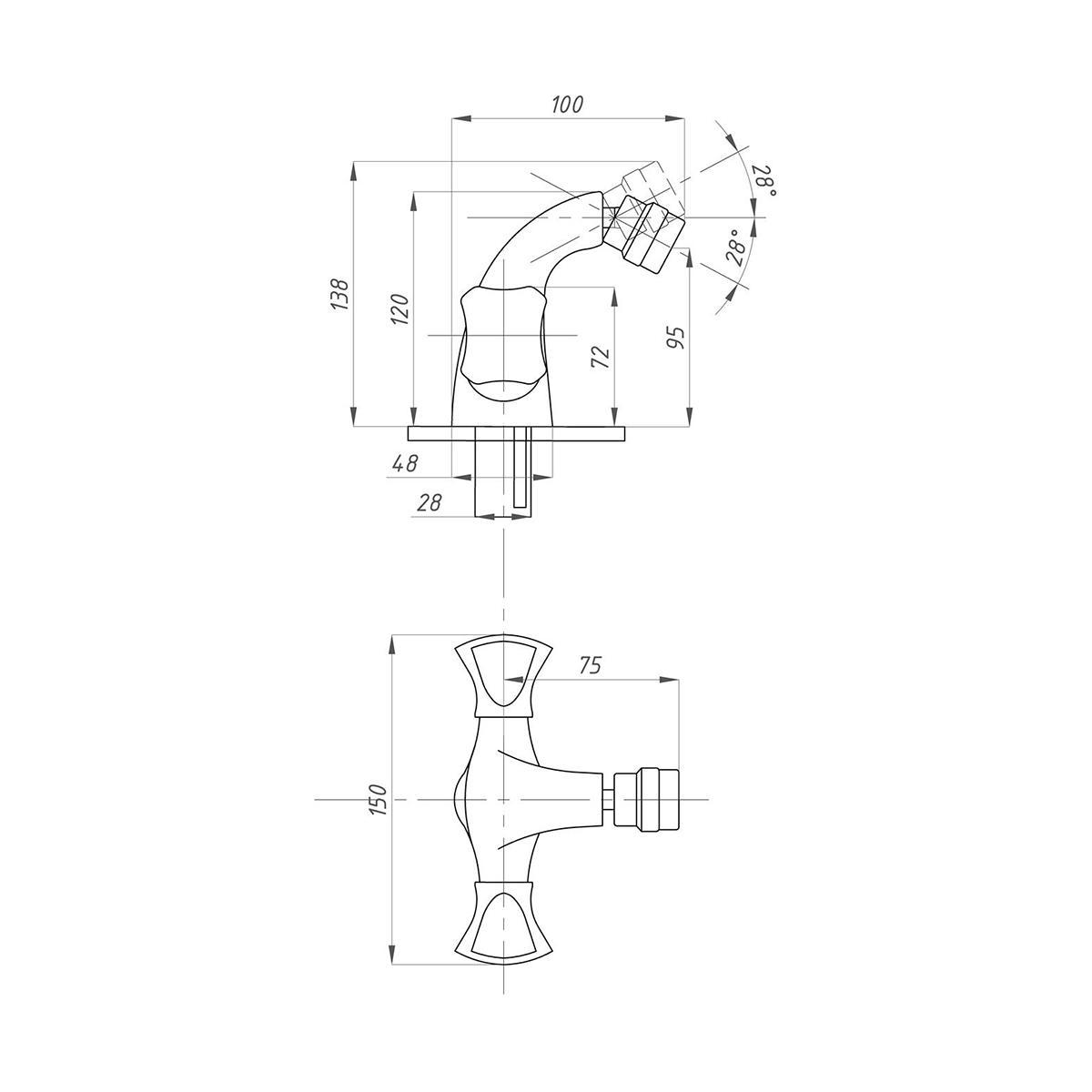 Смеситель для биде Профсан ПСМ-930-38, двухвентильный, хром