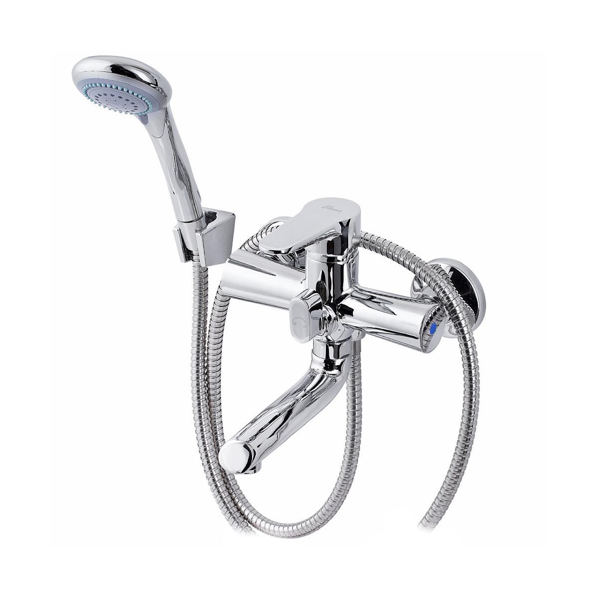 - Душевая лейка на гибком шланге и настенный держатель в комплекте.
