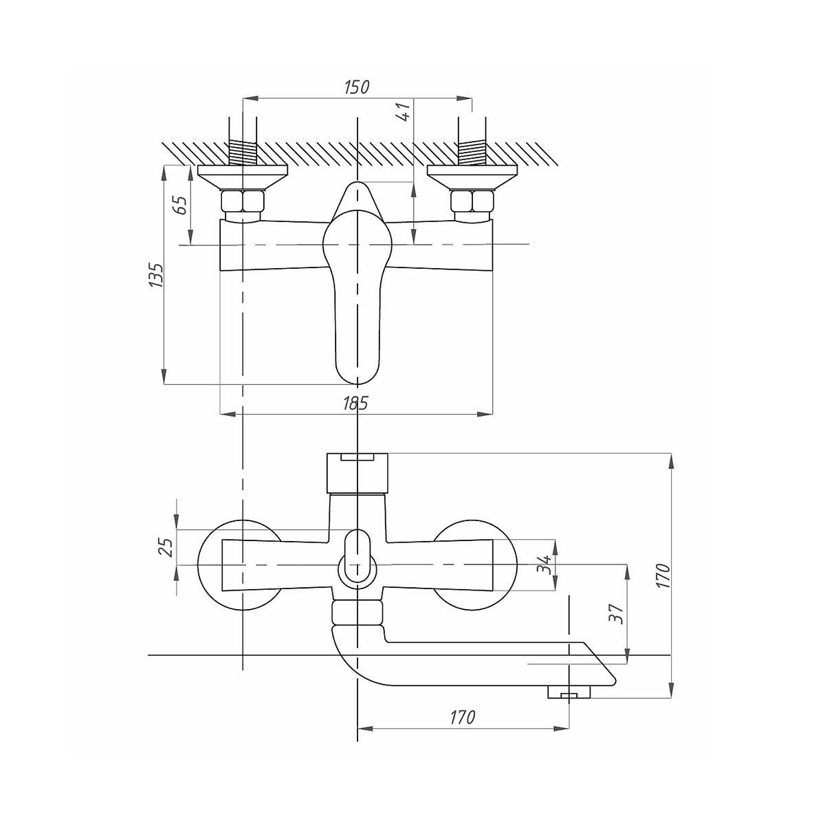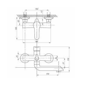 Смеситель предназначен для подачи воды в раковину и ванну, устанавливается на стену.