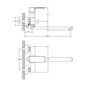 Смеситель предназначен для подачи воды в раковину и ванну, устанавливается на стену. Длинный плоский излив 300 мм делает его универсальным в применении.