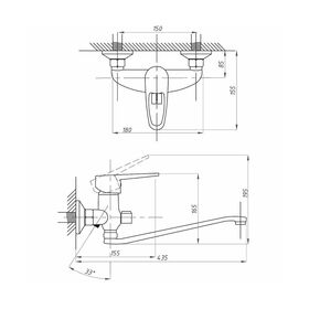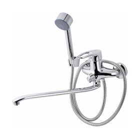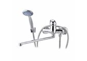 Смеситель предназначен для подачи воды в раковину и ванну, устанавливается на стену. Длинный, плоский излив 350 мм делает его универсальным в применении.