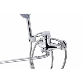 - Душевая лейка на гибком шланге и настенный держатель в комплекте.