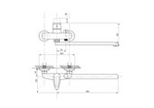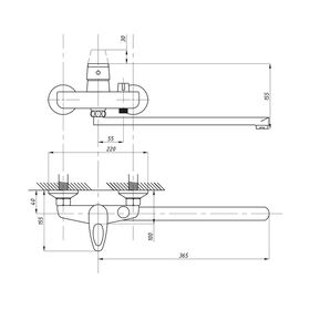 Смеситель предназначен для подачи воды в раковину и ванну, устанавливается на стену. Длинный, плоский излив 365 мм делает его универсальным в применении.