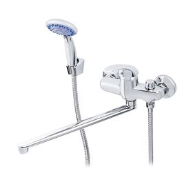 Смеситель предназначен для подачи воды в раковину и ванну, устанавливается на стену. Длинный, плоский излив 365 мм делает его универсальным в применении.