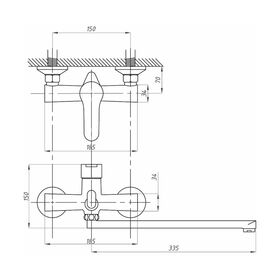 Смеситель предназначен для подачи воды в раковину и ванну, устанавливается на стену. Длинный, плоский излив 335 мм делает его универсальным в применении.