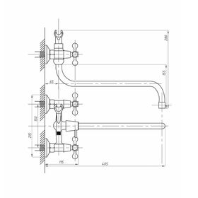 Смеситель предназначен для подачи воды в раковину и ванну, устанавливается на стену.