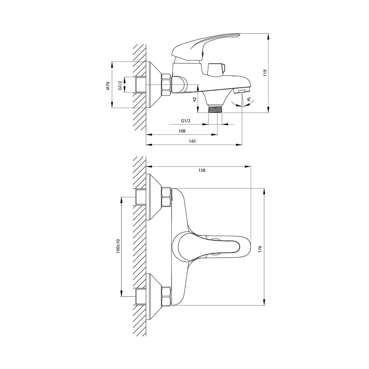 Смеситель предназначен для подачи воды в ванну, обеспечивает комфортное использование душа, устанавливается на стену.