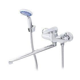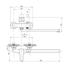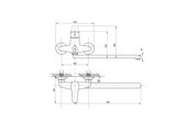 Смеситель предназначен для подачи воды в раковину и ванну, устанавливается на стену. Длинный, плоский излив 365 мм делает его универсальным в применении.