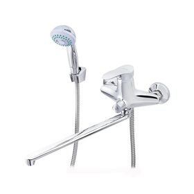 Однорычажный смеситель для ванны с хромированным покрытием позволяет экономить средства и пространство в ванной комнате, т.к. благодаря длинному поворотному изливу его можно использовать одновременно и для ванны, и для раковины. Смеситель изготовлен из ЦАМ. Данный сплав не разрушается со временем, может использоваться в системах высокого давления, при этом он абсолютно безопасен для здоровья.
