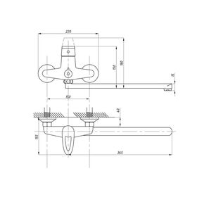 Смеситель предназначен для подачи воды в раковину и ванну, устанавливается на стену.