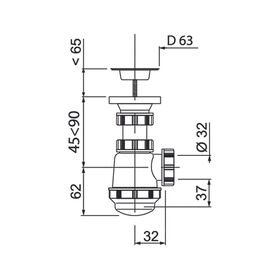 Универсальный сифон стандартного белого цвета, регулируемый по высоте от 45 до 90 мм.