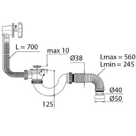 Сифон для ванн VIRPlast Элит Мини, полуавтомат, с переливом, латунный, 700 мм, гофротруба 800 мм