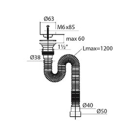 Тип сифона: гофрированный с хомутом;