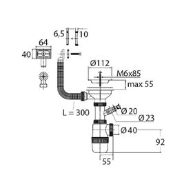 Сифон VIRPlast Эконом, с нержавеющей чашкой, с переливами, 3 1/2" x 40 мм