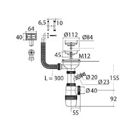 Сифон VIRPlast Элит, 3 1/2" x 40 мм, с отводом, с нержавеющей чашкой d 114, с переливами