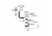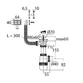 Сифон VIRPlast Элит, с нержавеющей чашкой с прямоугольным переливом, 1 1/2" x 40 мм, 300 мм