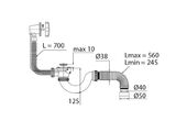 Сифон Wirquin Neo, с выпуском, с отводом, с нержавеющей чашкой, с переливами, 1 1/2" x 40 мм, 800 мм