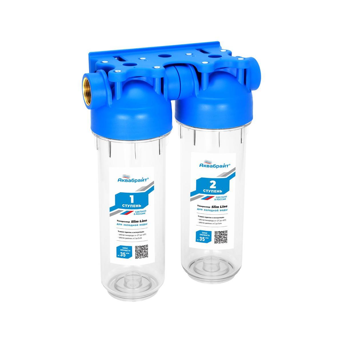 Двухступенчатая система магистральных фильтров Аквабрайт АБФ-2 Slim Line, 1/2"