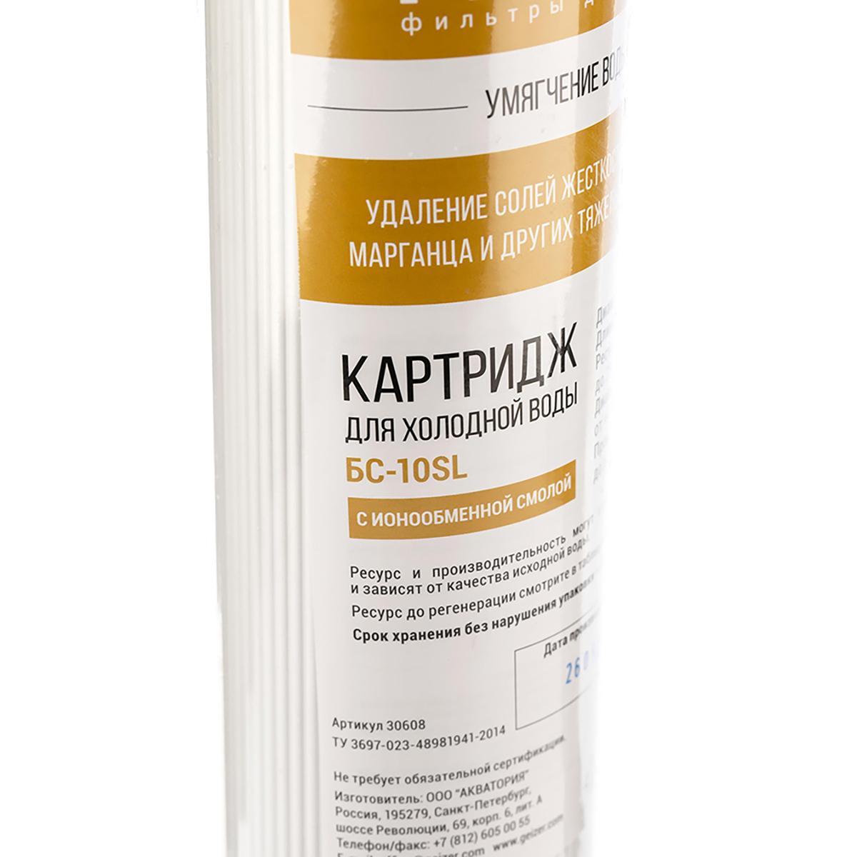 Картридж для умягчения воды Гейзер БС-10SL, Slim Line 10"