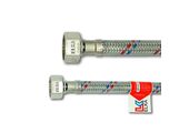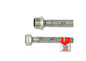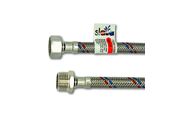 Подводка представляет собой гибкий шланг, внутренняя часть которого изготовлена из этилен-пропиленового каучука (EPDM), покрытого оплеткой из 7 стальных нитей AISI 201 толщиной 0,16 мм. Штуцер и ниппель выполнены из латуни, а гайка из нержавеющей стали AISI 202.