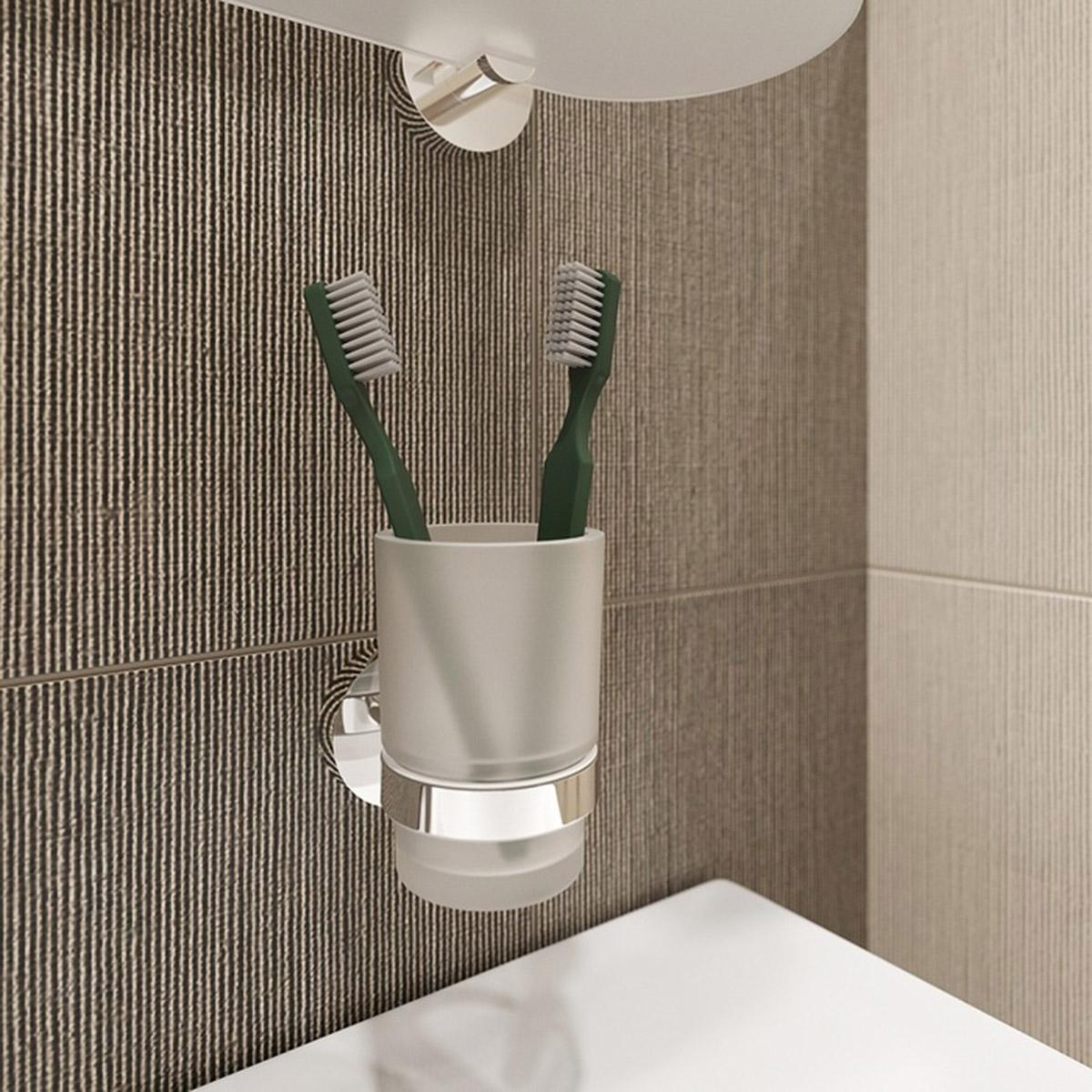 Стакан для зубных щеток IDDIS Sena, с настенным держателем, хром