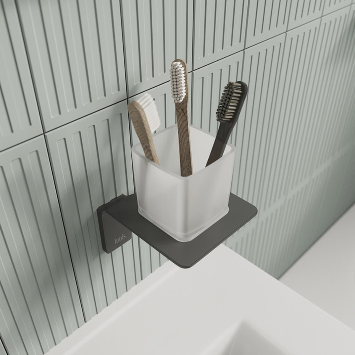 Стакан для зубных щеток IDDIS Slide, с настенным держателем, графит
