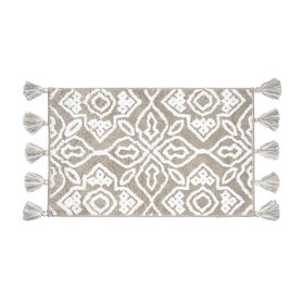 Мягкий бежевый коврик для ванной с декоративными пушистыми кисточками и белым узором, очень приятный на ощупь. Ворс из микрофибры отлично держит форму, легко чистится и быстро сохнет. Коврик подойдет для ванной и туалета, а также поможет создать уют в спальне или гостиной.