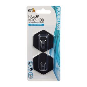 Крючок самоклеящийся Рыжий кот Шестиугольник, 4,5 x 5 x 2,5 см, набор 2 шт, черный