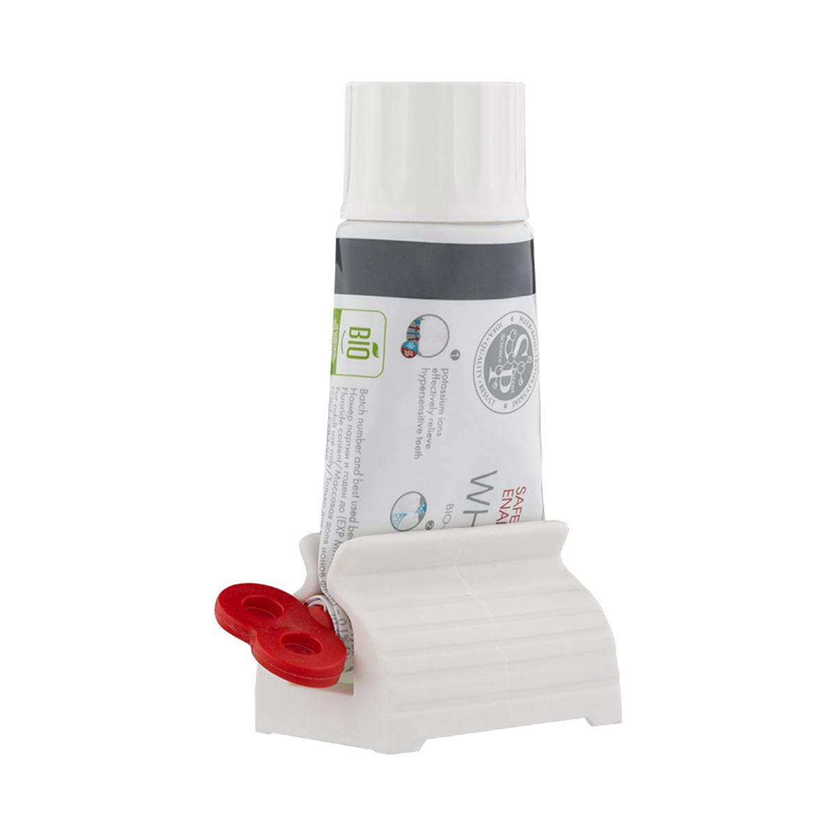 Дозатор для зубной пасты имеет подставку, благодаря которой удобно ставить изделие на полку. Металлический или пластиковый тюбик от зубной пасты, косметики, еды накручивается внутри дозатора, а когда содержимое закончится - просто вытаскивается.